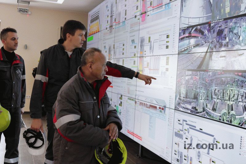 После этого для гостя провели экскурсию по комбинату. Знакомство с предприятием началось в Центральной диспетчерской. Отсюда диспетчерам, как на ладони открываются все технологические процессы на предприятии. За ними они следят на огромном мониторе во всю стену, ширина которой 10 метров.