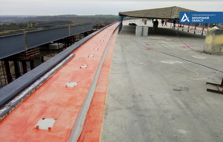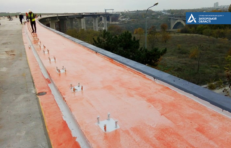 В Запорожье на балочном мосту выполняются работы по гидроизоляции тротуаров