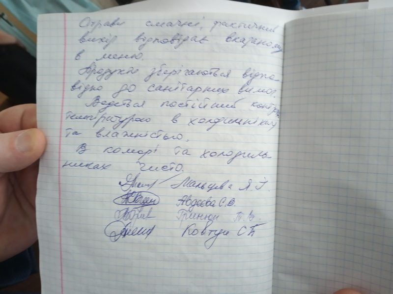 — У журналі є зауваження та пропозиції, — говорит Станислав Романчук. — Не все можна виконати. Наприклад, не можна давати дітям смажену картоплю, як пропонують батьки. А ось пропозиція навчити дітей користуватися приладами — цілком слушне.