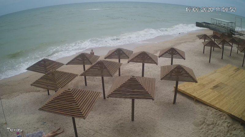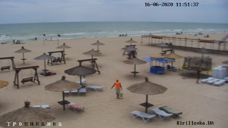 Сегодня, судя по записи с веб-камер, установленным на побережье Азовского моря в Кирилловке, видно, что отдыхающих значительно меньше обычного, но они есть. Может быть, свою роль здесь сыграла и непогода, которая бушевала в области на выходных.