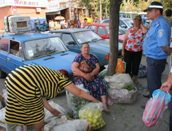 «Почему вы здесь торгуете?» - спрашиваю у бабушки, которая предлагает картошку по 3 грн. за кило. «Да сама не знаю, я тут редко бываю, приезжаю из соседнего села, - отвечает она. - Торговала как-то на новом рынке, там даже местового с меня взяли меньше, чем положено, видели, что товара немного. Но там народу почти нет, а тут всегда полно. Сегодня у меня пара кило картошки, чего ж туда идти?!» «Нервотрепка одна, а не торговля! - возмущается Наталья, закрывая ящики с помидорами и перцем. - Гоняют в день по несколько раз». «А на рынке не пробовали торговать?» - интересуюсь. «На Центральном места нет, а на «Образцовом»... Что там делать? Там же нет никого, - продолжает дама. - Я бы с удовольствием там торговала: чисто, светло, просторно, но люди туда не идут. А тут вроде и с земли, в пыли, а все равно берут. Остановка рядом, все время народ мимо проходит, что-то покупают». «Верните рынок на 8-м Марта, где народ торговал овощами-фруктами! - кричит покупательница. - А то люди выгнали, а куда им деваться?». «Мы на кусок хлеба зарабатываем, а вы с нами боретесь! - наседает мужчина, продающий кукурузу. - Заводы закрылись, куда нам идти?» А потом и вовсе выдал, что товар не его, бери, дескать, даром.