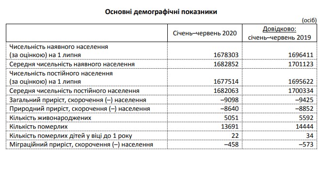 На 1 июля в Запорожской области проживал 1 млн. 678 тыс. 303 человека. Численность населения Запорожской области продолжает уменьшаться. Это происходит за счет природного и миграционного сокращений. По данным Главного управления статистики в Запорожской области, в январе — июне 2020 года смертность в нашем регионе почти в три раза превышала рождаемость. Так, в январе — июле родилось 5 тыс. 51 малыш, а умерло 13 тыс. 691 человек. По сравнению с прошлым годом, смертность уменьшилась. За аналогичный период 2019 года умерло 14 тыс. 444 человека.