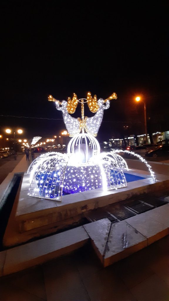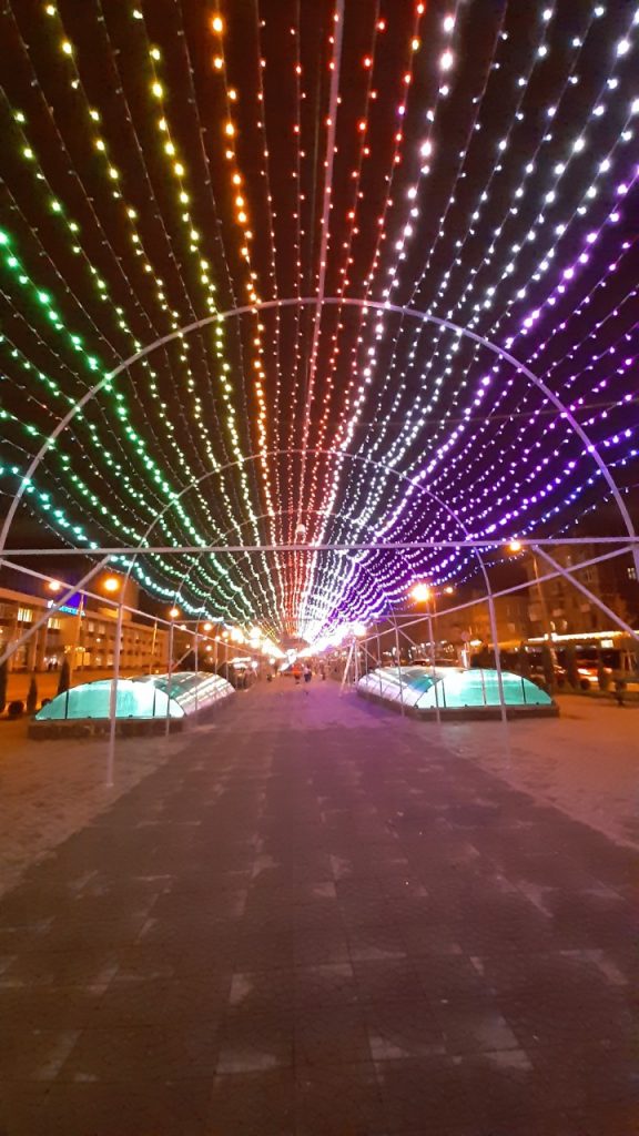 Многочисленные арки украсили иллюминацией, которая в темное время суток очень красиво переливается.