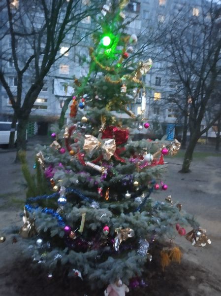 -Елка — это инициатива жильцов — они очень хотели ее посадить у дома, — рассказывает председатель ОСМД дома 19-б Виктория Павлюк. — В украшении елки участвовали дети всего двора. Я даже три раза перенаряжала елку — ее завешивали игрушками. Люди шли и вешали на нее игрушки. Правда, вижу, что некоторых игрушек уже нет. Хотя Дед Мороз стоит с первого дня. А еще мы проводили конкурс на лучшее освещение окон гирляндами. Такие проекты, как этот, нужны городу. Люди начинают заботиться о своем жилье. И акция очень сдружила наших жильцов.