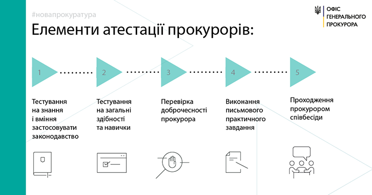 Процесс аттестации одинаковый для всех прокуроров и идентичен процедуре аттестации прокуроров Генеральной прокуратуры перед созданием Офиса Генерального прокурора.