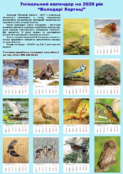 -Каждый квартал в календаре представляют одно млекопитающее и две птицы, которые наиболее часто встречаются на Хортице в это время, — говорит Сергей Козодавов. — Например, на январской странице — фото зарянки. В феврале — косуля. А марте — зимняк, это птица семейства ястребиных, которая прилетает к нам только зимой.