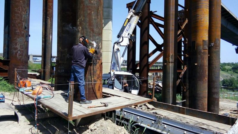 - выполняются работы по переустройству стапелей и подкрановой эстакады для продольной надвижки и укрупненного сбора пролетного строения Сооружения №4 (балочный мост через Старый Днепр) с верховой на низовую часть;