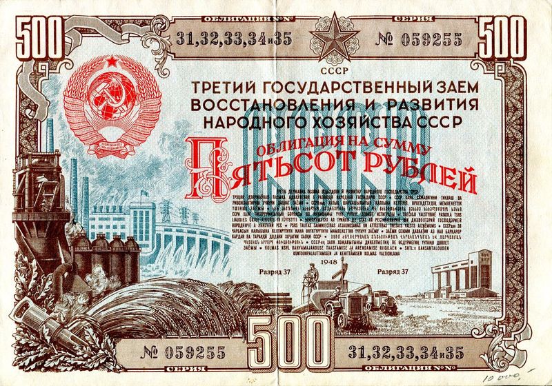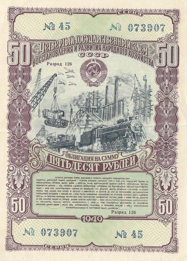 Всего с 1946 по 1957 год в Советском Союзе выпустили пять тиражей облигаций со сроком погашения 20 лет (кроме последнего, 5-летнего).