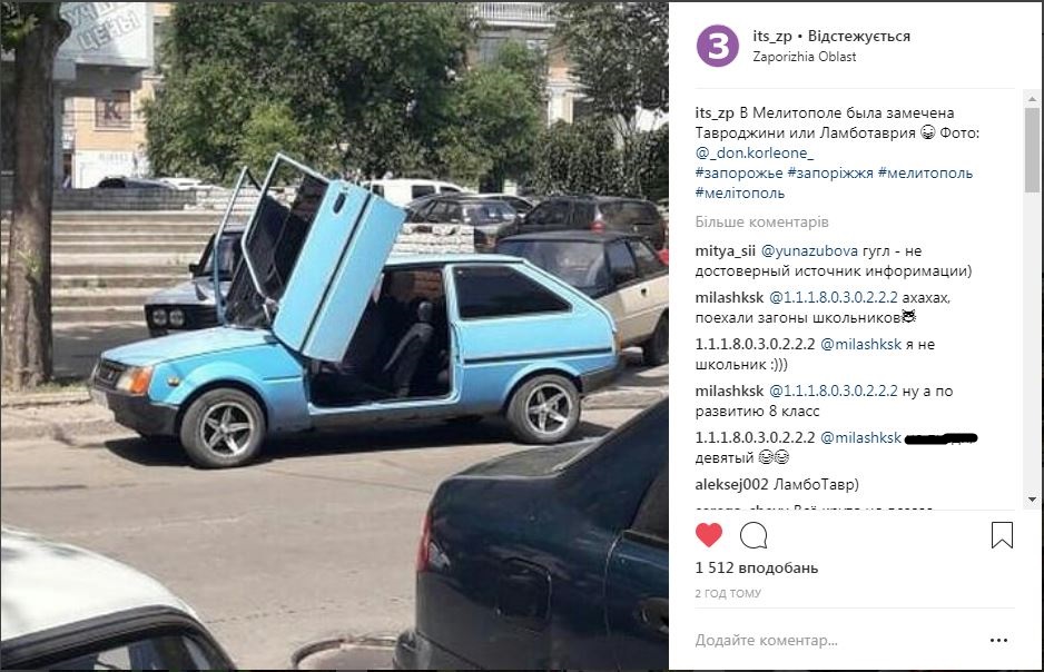 Фотофакт: в Запорожской области заметили «Тавроджини или Ламботаврию»10.07.2018 ![]() В Запорожской области, в Мелитополе, был замечен модифицированный автомобиль «Таврия», об этом сообщается в социальных сетях. Так, в аккаунте Инстаграм «Its ZP» опубликовали фото автомобиля «Таврия» над которым потрудились народные умельцы. Теперь у машины двери открываются не вбок, как в классическом варианте, а вверх, как в автомобиле vip-класса Ламборджини. Источник: akzent.zp.ua * Редакция сайта не несет ответственности за содержание материалов. Мнение авторов может не совпадать с мнением редакции. |