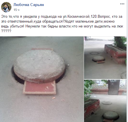 Жители Запорожья боятся за своих детей из-за люков (ФОТО)04.06.2018 ![]() В социальных сетях жители Запорожья довольно часто публикую фото открытых или небезопасных люков. Так, очередной случай зафиксировали по улице Космической, 120. Там, несмотря на то, что люк и закрыт, но еще более опасен. По словам автора, там каждый день гуляют дети, поэтому они и боятся за их безопасность.