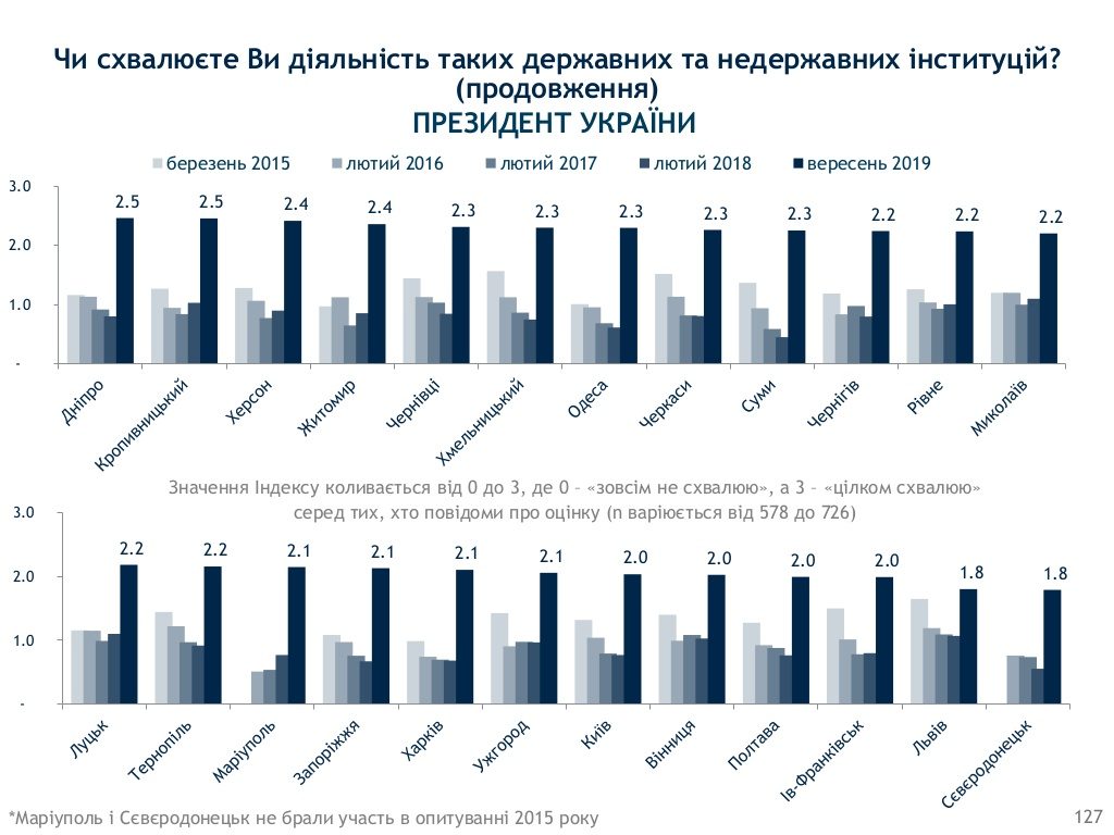В Запорожье одобряют действия Зеленского меньше, чем в большинстве городов страны (ОПРОС)09.12.2019 ![]() Президент Зеленский занимает свою должность чуть более полугода. На выборах он победил с уверенным преимуществом, но сейчас доверие к нему резко падает, в Запорожье — даже стремительно. Об этом свидетельствуют данные опроса социологической группы «Рейтинг». Как оказалось, запорожцы доверяют Зеленскому меньше, чем жители большинства других городов страны. Полностью одобряют его действия 31% опрошенных, а 37% — «скорее одобряют». Также 12% «скорее не одобряют» действия президента, 4% — не одобряют вообще. Так, запорожцы стали 8-м городом из 25-и из опрошенных опрошенных по количеству негативных отзывов о работе президента, больше только на Донбассе (Севередонецк, Мариуполь) и на Галичине (Винница , Ивано-Франковск, Львов, Хмельницкий). В Киеве же самый большой процент тех, кто был не готов ответить на вопрос о президенте, и один из самых маленьких процентов тех, кто отзывается о позитивно о его работе. В Запорожье, как и в других городах, было опрошено 800 человек возрастом от 18 лет. ![]() Напомним, ранее мы рассказывали, что по данным опроса от другой социологической группы, рейтинг Зеленского упал на 21% за два месяца. Семь причин падения рейтингов Зеленского, Сколько обещаний Зеленский провалил и исполнил за полгода своей работыИсточник: akzent.zp.ua * Редакция сайта не несет ответственности за содержание материалов. Мнение авторов может не совпадать с мнением редакции. |